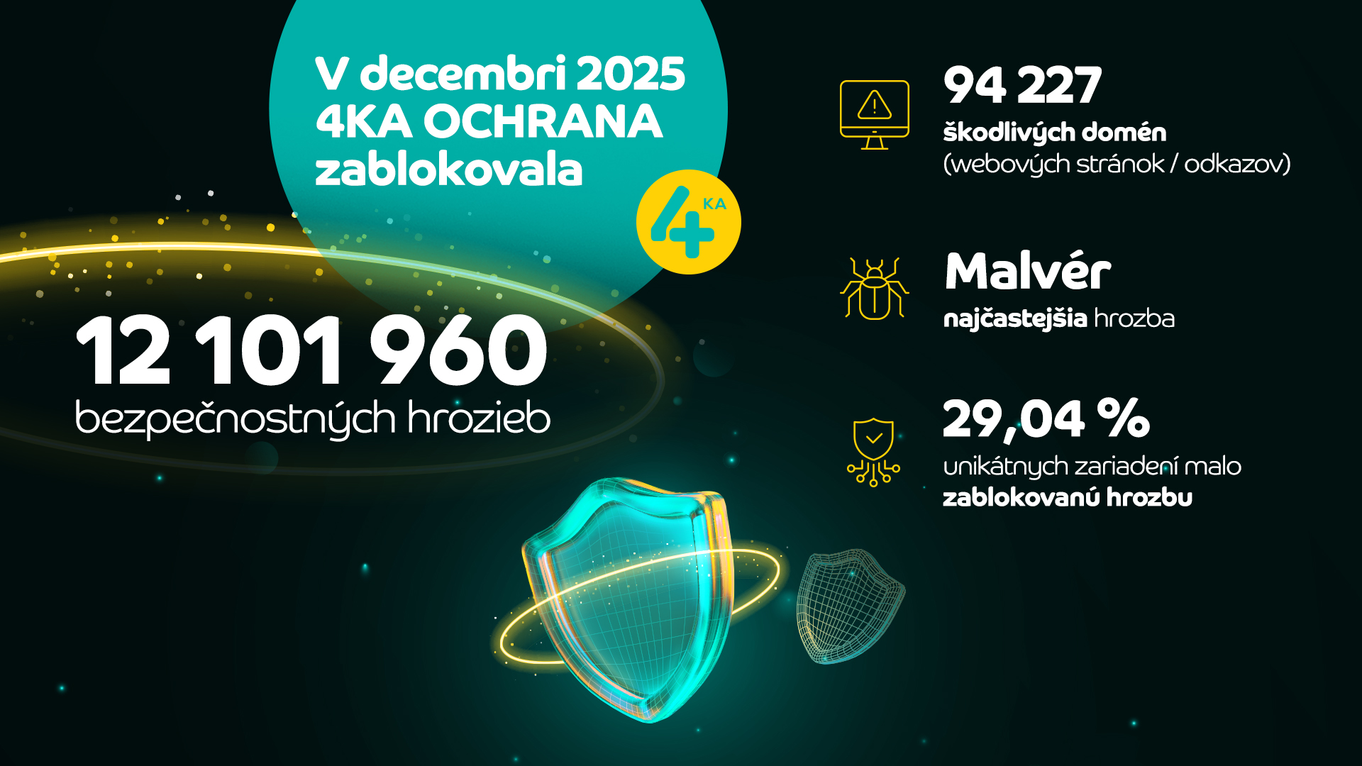 Služba 4KA OCHRANA, ktorá chráni používateľov mobilnej siete SWAN pred kybernetickými útokmi, zaznamenala v decembri 2025 mimoriadne vysoký počet zachytených hrozieb.
