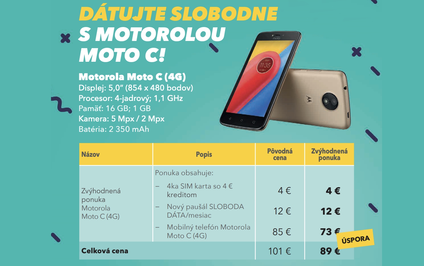 Čo tak vybaviť smartfón aj mobilný internet na celé sviatky jedným ťahom? 4ka vám teraz dá šikovnú Motorolu Moto C spolu s paušálom Sloboda DÁTA, ktorý ponúka neobmedzené dáta v sieti 4ky len za 89 eur.