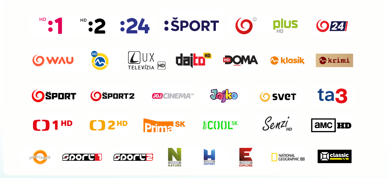 Na sledovanie 4KA TV cez anténu vám postačí bežná anténa. Televízne programy môžete prijímať bez nutnosti internetu - doma aj na chate. Získate viac ako 30 televíznych staníc , vrátane filmových, detských a športových kanálov.